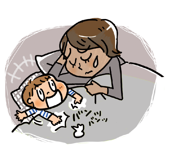 一緒にベッドに入り、寝かしつけようとしても、何かを察しているのか、子どもはなかなか寝てくれませんでした。